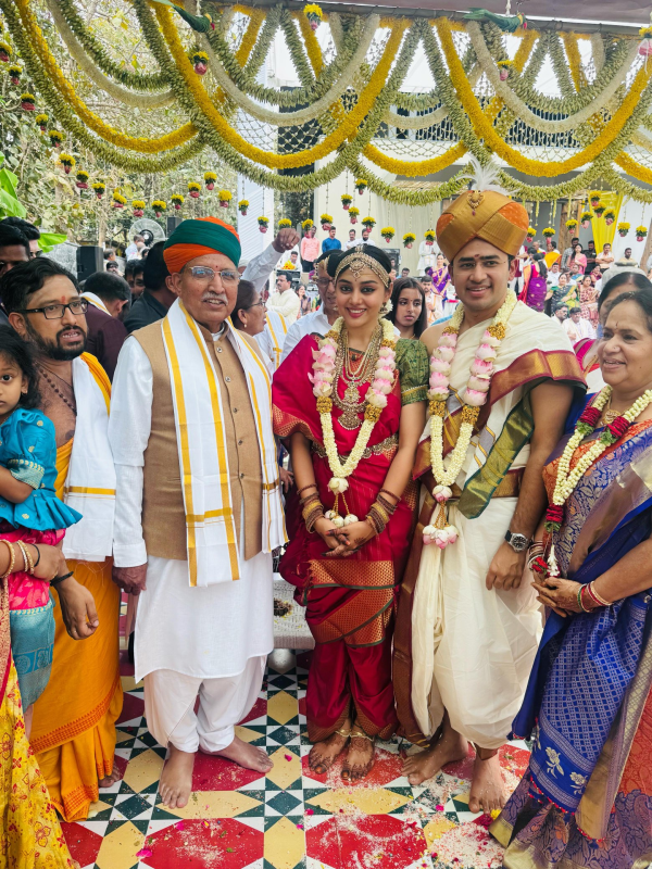 बेंगलुरु। भारतीय जनता युवा मोर्चा (भाजयुमो) के राष्ट्रीय अध्यक्ष और बेंगलुरु दक्षिण से सांसद तेजस्वी सूर्या ने गुरुवार को कर्नाटक की प्रसिद्ध शास्त्रीय संगीत गायिका शिवश्री स्कंदप्रसाद के साथ विवाह कर लिया। यह समारोह वैदिक मंत्रोच्चार के साथ पारंपरिक रीति-रिवाजों से संपन्न हुआ। इस अवसर पर भारतीय जनता पार्टी (भाजपा) के कई दिग्गज नेता मौजूद रहे, जिनमें प्रदेश अध्यक्ष बी. वाई. विजयेंद्र, केंद्रीय मंत्री वी. सोमन्ना और अर्जुनराम मेघवाल शामिल थे।