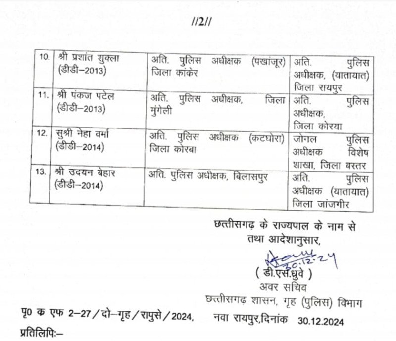 CG ASP Transfer : पुलिस विभाग में बड़ा फेरबदल, 13 एडिशनल एसपी के हुए तबादले, देखें लिस्ट...