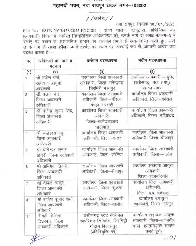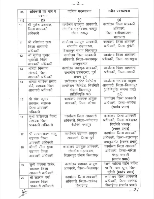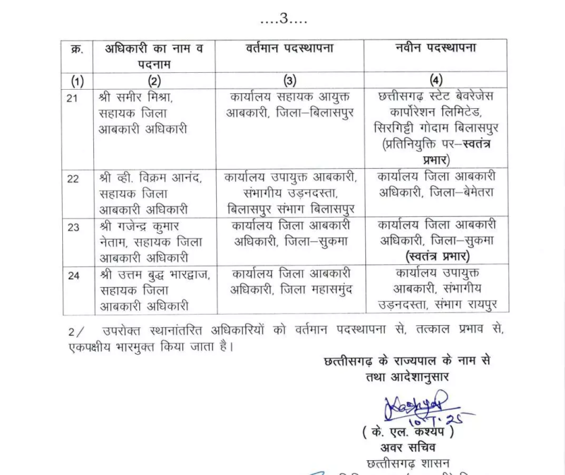 CG Breaking : आबकारी विभाग में बड़ा फेरबदल, 24 नए अधिकारियों की नियुक्ति, देखें लिस्ट...