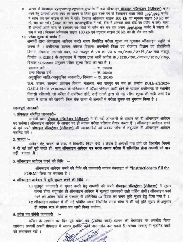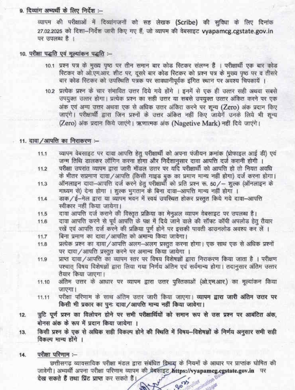 परीक्षा की तैयारी कर रहे अभ्यर्थियों के लिए महत्वपूर्ण है कि वे पात्रता शर्तें, सिलेबस, एग्जाम पैटर्न, आवेदन प्रक्रिया और अंतिम तिथियों जैसी जानकारी समय-समय पर आधिकारिक पोर्टल पर चेक करते रहें। CGPEB द्वारा जारी अधिसूचना में परीक्षा से संबंधित सभी दिशानिर्देश विस्तार से उपलब्ध हैं। जल्द ही आवेदन प्रक्रिया भी शुरू की जाएगी, जिसके बाद अभ्यर्थी ऑनलाइन आवेदन कर सकेंगे।