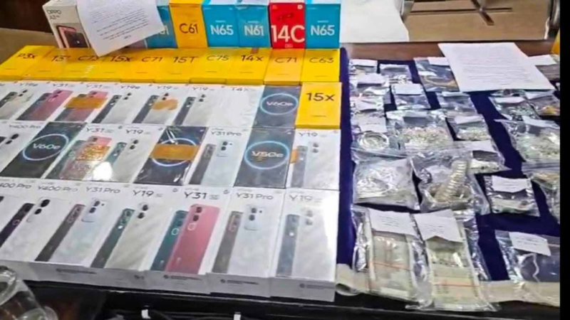 पुलिस ने आरोपियों से 12 लाख रुपये के 96 मोबाइल फोन, करीब 8 लाख के सोने-चांदी के गहने, एक ब्रेज़ा कार और बाइक बरामद की है।