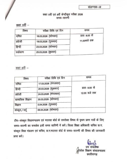 CG News: 5वीं-8वीं की बोर्ड परीक्षा का टाइम टेबल जारी