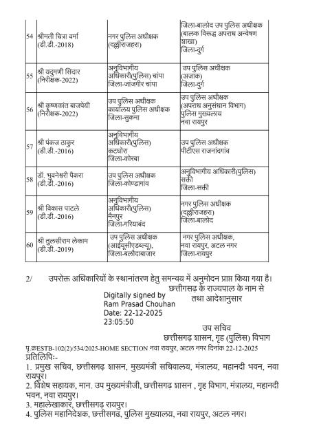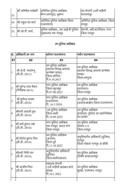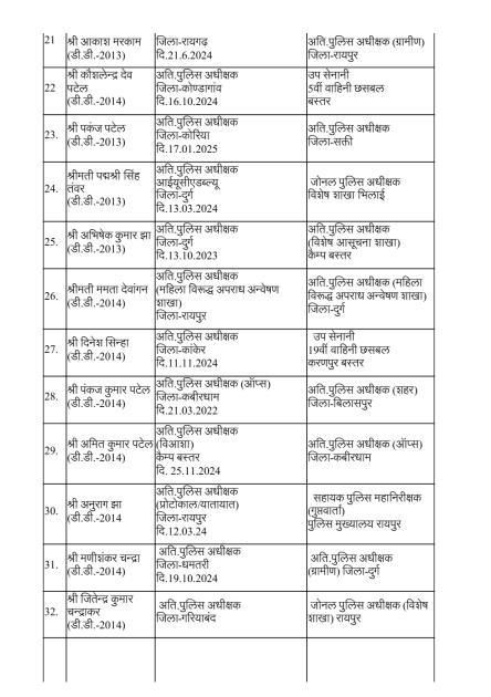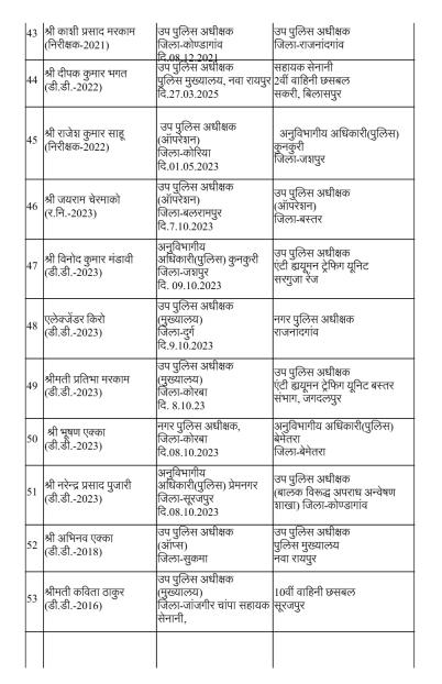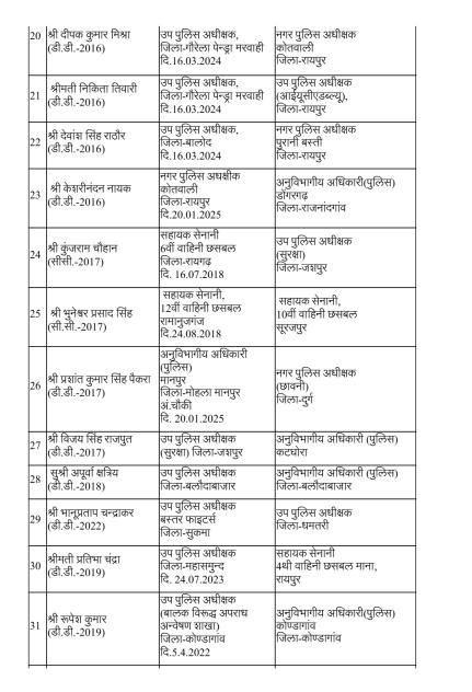 CG Police Transfer : पुलिस विभाग में व्यापक फेरबदल, 95 अफसरों के हुए तबादले, देखें लिस्ट
