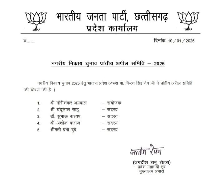सीजी पॉलिटिक्स: निकाय चुनाव में टिकट वितरण के बाद दावे विरोध से निपटने बनी अपील समिति, बीजेपी में डैमेज कंट्रोल की तैयारी