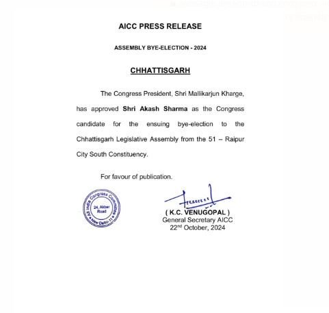 CG Politics: रायपुर दक्षिण के लिए कांग्रेस प्रत्याशी आकाश शर्मा होंगे। आकाश के नाम को लेकर सभी बड़े नेताओं ने अपनी सहमति जताई जिसके बाद मंगलवार को उ