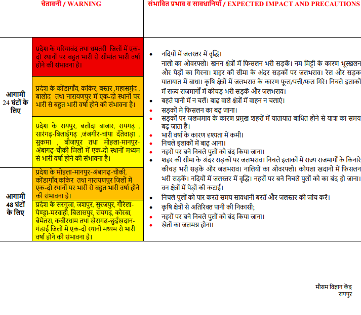CG Rain Alert: छत्तीसगढ़ में बहुत भारी बारिश की चेतावनी, कई जिलों के लिए ऑरेंज और यलो अलर्ट जारी, जानें अपने जिले का हाल