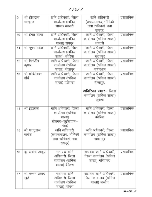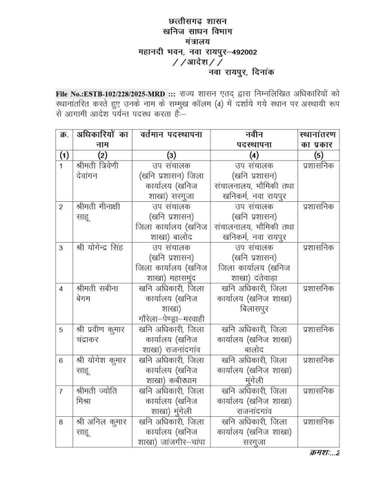 CG Transfer : खनिज विभाग में बड़ा फेरबदल, 22 जिलों में अधिकारियों के हुए तबादले, देखें लिस्ट
