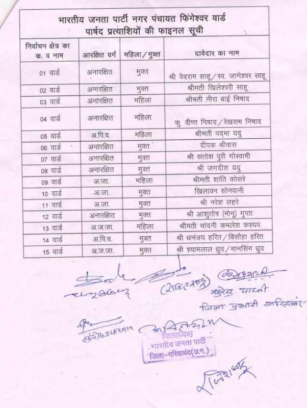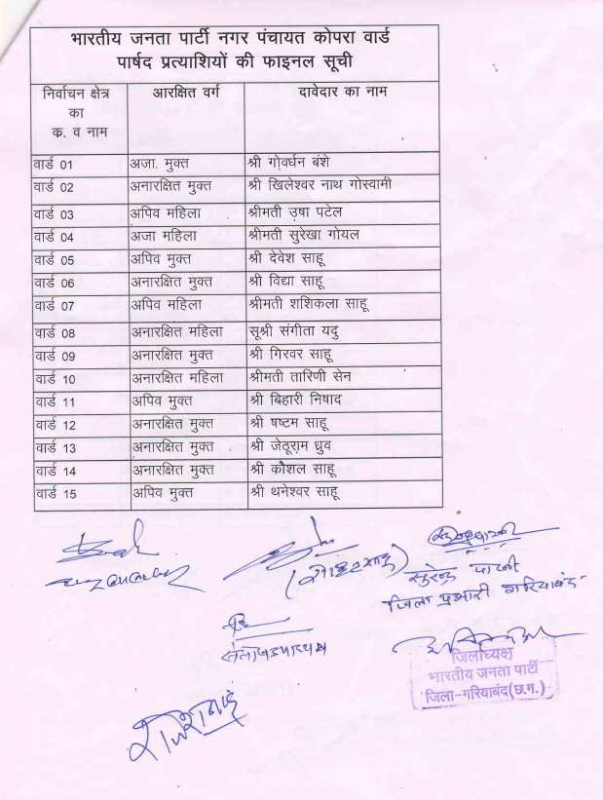 भाजपा ने आज जिला मुख्यालय में आयोजित प्रेस कांफ्रेंस के दौरान यह सूची जारी की।