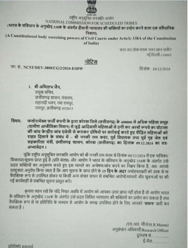 फ्लोरा मैक्स मामला: आदिवासी महिलाओं से ठगी, कंवर की शिकायत पर राष्ट्रीय अजजा आयोग ने रिपोर्ट मांगी
