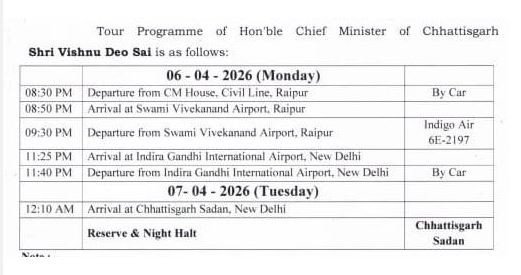 Vishnudeo Sai Delhi Visit:सीएम विष्णुदेव साय आज से दो दिन दिल्ली दौरे पर, देर शाम होंगे र​वाना