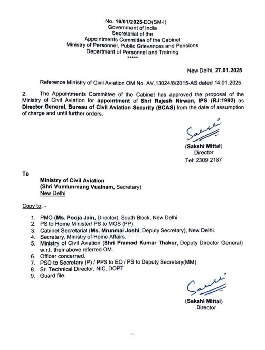 नागरिक उड्डयन सुरक्षा ब्यूरो के महानिदेशक पद के लिए आईपीएस अधिकारी हुए नामित, पढ़ें पूरी खबर