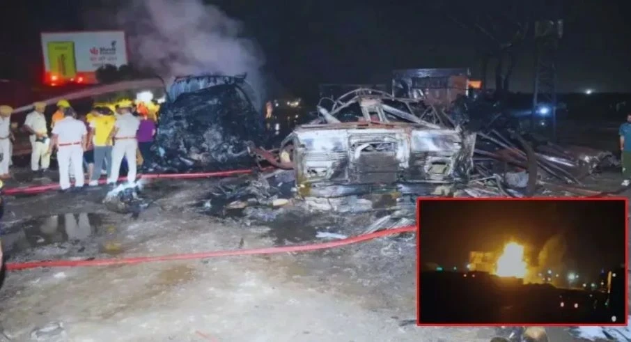 LPG Gas Cylinder Blast: जयपुर-अजमेर हाईवे पर LPG ट्रक और टैंकर की टक्कर, एक के बाद एक कई धमाके; 1 जिंदा जला