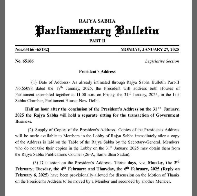 राष्ट्रपति द्रौपदी मुर्मू संसद के दोनों सदनों को करेंगी संबोधित, इस शुक्रवार...
