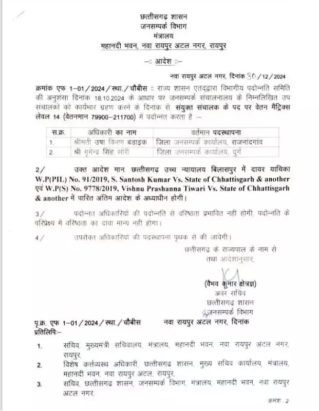 Promotion News : जनसंपर्क विभाग में प्रमोशन, दुर्ग के उप संचालक सोरी बने संयुक्त संचालक, देखें आदेश कॉपी...