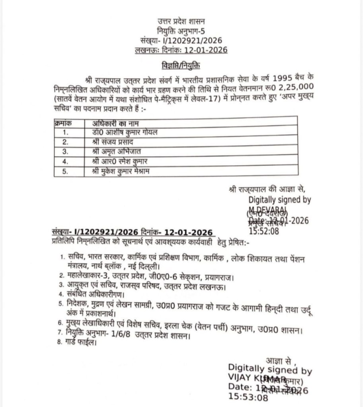 Promotion News : योगी सरकार की बड़ी प्रशासनिक सर्जरी, 5 वरिष्ठ IAS अफसर बने अपर मुख्य सचिव