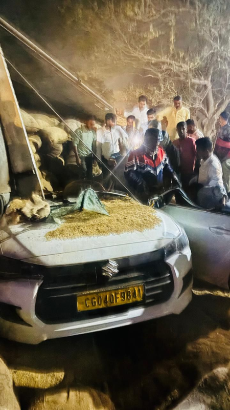 Raipur Breaking : धान से लदी ट्रक अनियंत्रित होकर कार के ऊपर पलटी, 1 की मौत, 4 घायल
