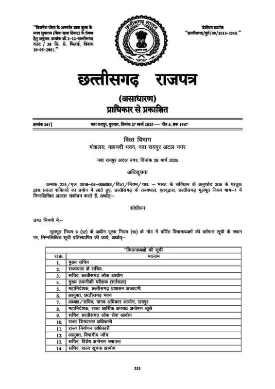 Raipur City News : रायपुर। छत्तीसगढ़ की साय सरकार ने एक महत्वपूर्ण कदम उठाते हुए राज्य के विभिन्न शासकीय विभागों के प्रमुखों को लेकर नई अधिसूचना जारी की है। इस अधिसूचना में सबसे बड़ा और ध्यान देने योग्य बदलाव राज्य आर्थिक अपराध अन्वेषण ब्यूरो (EOW) के प्रमुख के पद में किया गया है। नए नियमों के तहत अब इस ब्यूरो का नेतृत्व महानिदेशक (DG) रैंक का IPS अधिकारी करेगा।
