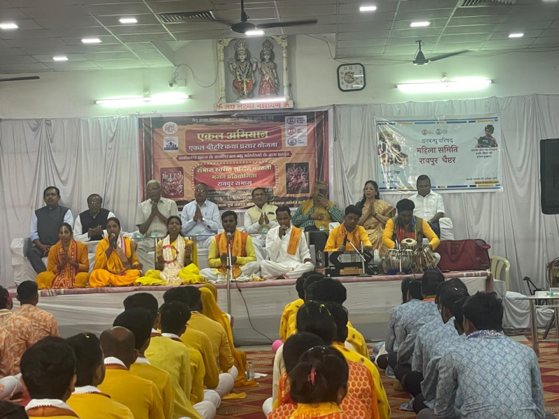 Raipur City News : रायपुर। छत्तीसगढ़ की राजधानी रायपुर में वन बंधु परिषद द्वारा आयोजित संभाग स्तरीय भजन प्रतियोगिता का भव्य समापन हुआ। एकल श्रीहरि कथा प्रसार योजना के अंतर्गत तीन माह से प्रदेशभर में गाँव, संच और अंचल स्तर पर सत्संग-भजन प्रतियोगिताएं आयोजित की जा रही थीं, जिनका फाइनल मुकाबला फाफाडीह स्थित पाटीदार भवन में सम्पन्न हुआ। प्रतियोगिता में सूरजपुर की टीम ने प्रथम स्थान हासिल कर बाज़ी मारी।