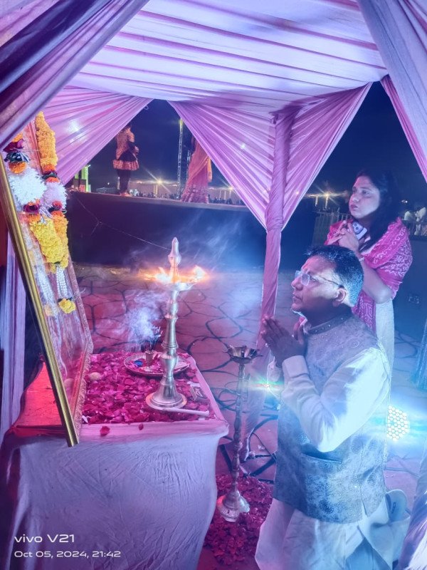 Ras Garba 2024: कार्यक्रम की शुरुआत शक्ति स्वरूपा मां दुर्ग की “गरबी” पूजा से हुई। गरबी पूजा में आज की अतिथियों ने किया। गरबी पूजा के बाद गरबा नृत्य करते समय लोग चारों तरफ गोल घेरा बनाकर मां की भक्ति में लीन होकर हर्षोल्लास के साथ नृत्य करते रहे।