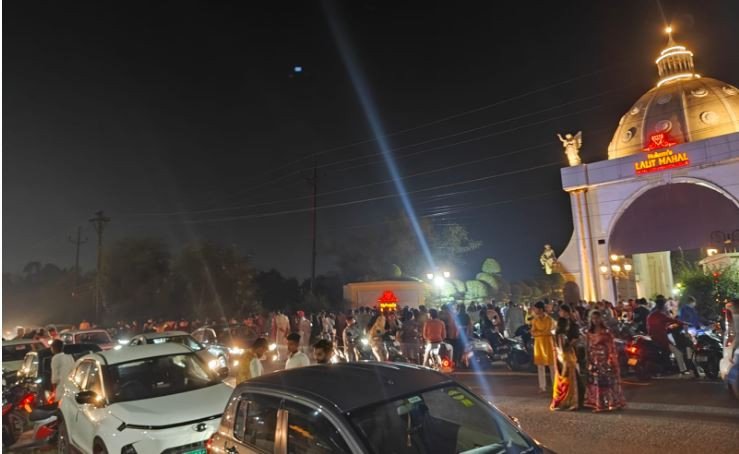 रायपुर। Ras Garba 2024: राजधानी रायपुर का होटल ललित महल शनिवार शाम उस वक्त माता रानी के जयकारे गूंज उठा जब शक्ति स्वरूपा मां दुर्ग की “गरबी” पूजा के बाद मध्यभारत के सबसे बड़े रास गरबा की शुरुआत हुई। ढोल की थाप पर थिरकती हजारों लोगों की भीड़ से पूरा पंडाल शक्ति स्वरूपा मां की भक्ति में डूब गया। देर रात तक गरबा में पंहुचने वाली भक्तों की कतार लगी रही।