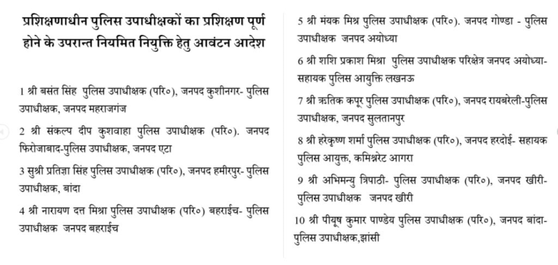 UP News : ट्रेनिंग पूरा कर चुके 34 पुलिस उपाधीक्षकों को स्थाई नियुक्ति, जानिए किस जिले की कमान किसके हाथ