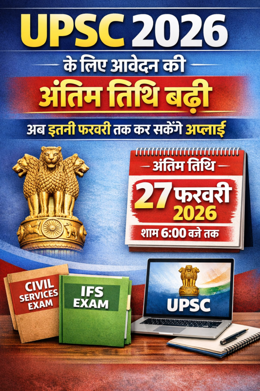 UPSC CSE 2026: यूपीएससी 2026 के लिए आवेदन की अंतिम तिथि बढ़ी, अब इतने फरवरी तक कर सकेंगे अप्लाई, देखें