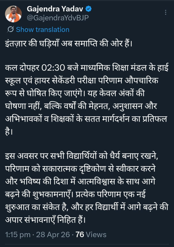 मंत्री ने सोशल मीडिया के माध्यम से जानकारी साझा करते हुए कहा कि छात्रों की मेहनत का फल अब सामने आने वाला है। उन्होंने यह भी बताया कि माध्यमिक शिक्षा मंडल द्वारा हाईस्कूल और हायर सेकेंडरी दोनों के परिणाम एक साथ घोषित किए जाएंगे।
