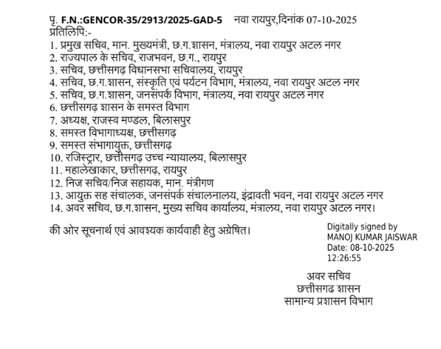 CG Rajyotsava 2025: रायपुर। सामान्य प्रशासन विभाग ने छत्तीसगढ़ राज्योत्सव 2025 के आयोजन के लिए दिशा-निर्देश जारी किए हैं। राज्य सरकार ने निर्णय लिया है कि पिछले वर्ष की भांति इस वर्ष भी छत्तीसगढ़ स्थापना दिवस के अवसर पर रायपुर सहित विभिन्न जिला मुख्यालयों में तीन दिवसीय कार्यक्रम आयोजित किए जाएंगे।
