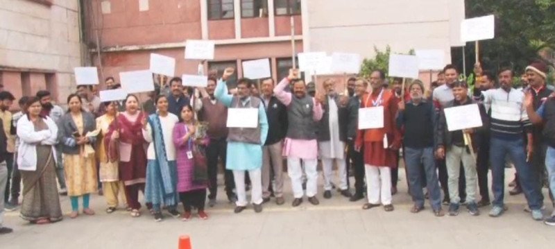16 सूत्रीय मांगों को लेकर शासकीय कर्मचारियो का वल्लभ भवन के सामने प्रदर्शन, उग्र आंदोलन की दी चेतावनी